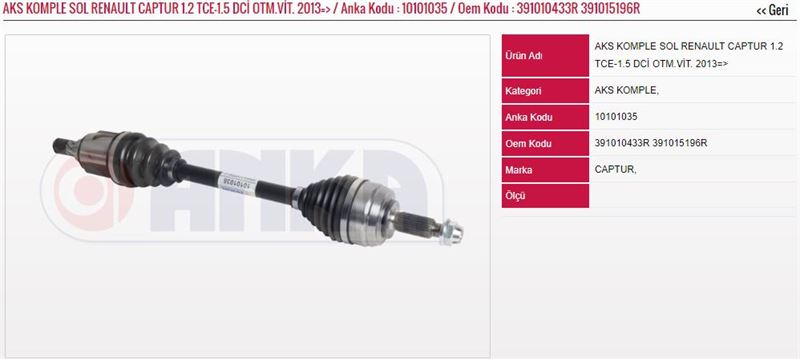AKS KOMPLE SOL 1.2 TCE-1.5 DCİ OTM.VİT. 2013=> YENİ RENAULT CAPTUR (1 AD )