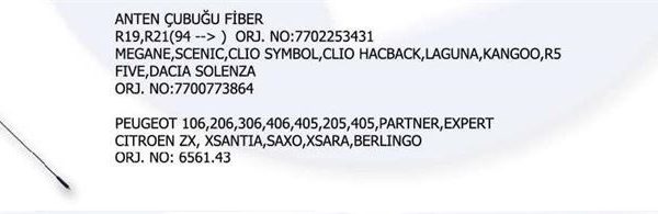 ANTEN ÇUBUĞU FİBER RENAULT R19- R21(94 ->) MEGANE SCENIC CLIO SYMBOL C (1 AD )
