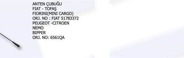 ANTEN FIAT DOBLO PALIO ALBEA SOLE FIORINO PEUGEOT BIPPER CITROEN NEMO ÇUBUĞU+ANTEN (1 AD )