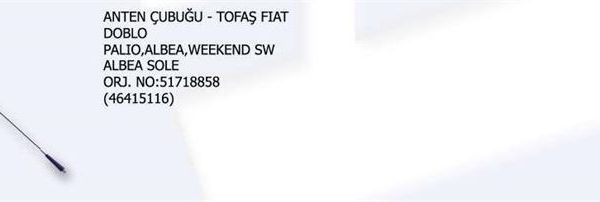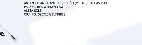ANTEN ÇUBUĞU FIAT DOBLO PALIO ALBEA WEEKEND SW ALBEA SOLE 51718858 (46415116) (1 AD )