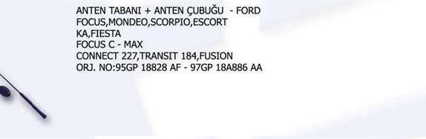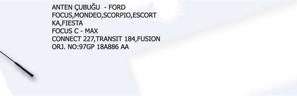 ANTEN TABANI + ANTEN ÇUBUĞU FORD FOCUS MONDEO SCORPIO ESCORT KA FIESTA FORD FOCUS C – MAX . . (1 AD )