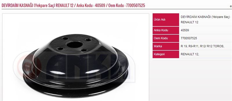 DEVİRDAİM KASNAĞI (YEKPARE SAÇ) RENAULT R12 (1 AD )