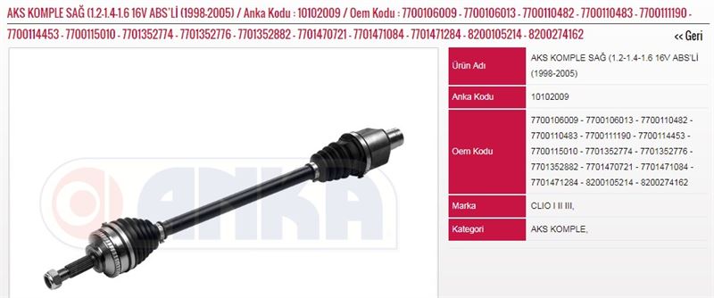 ON AKS SAĞ ABSLI CLIO II 1,2/1,4/1,6 8V 16V 98–> (IC FREZE:23-DIS FREZE:21-UZUNLUK:715-ABS HALKASI (1 AD )
